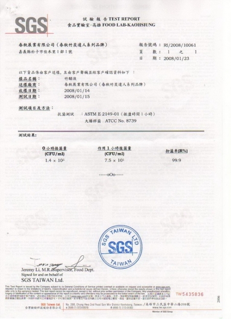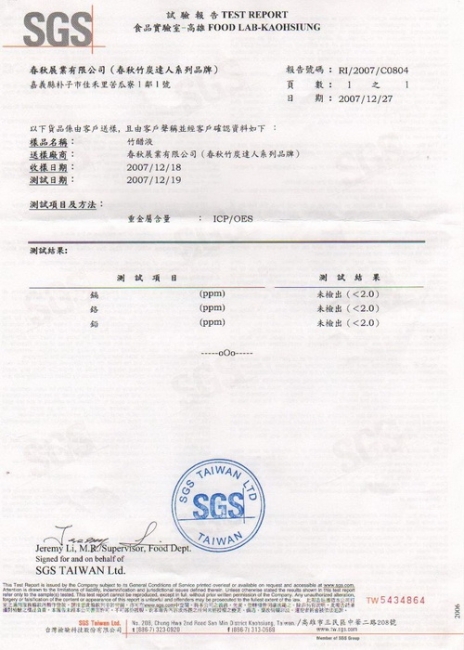 本產品經台灣SGS檢驗科技、國防部中科院,財團法人紡研所檢測,各項檢驗均符合通過,多年來國內外各農政等單位,農業土壤專家學者均知道竹炭、竹醋用於農業及土壤上的好處,農民朋友也大多普遍了解,礙於價格問題,無法接受,本公司打破此一迷思,讓大家都能接受,最終目地仍希望台灣之農業生態能達到政府所提倡之農藥減半,降低土地酸性毒化,朝有機健康之路線永續經營。