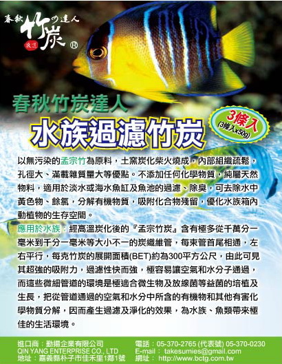 水族淨化過濾竹炭條/袋(內含50g*3條)
